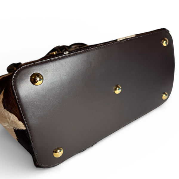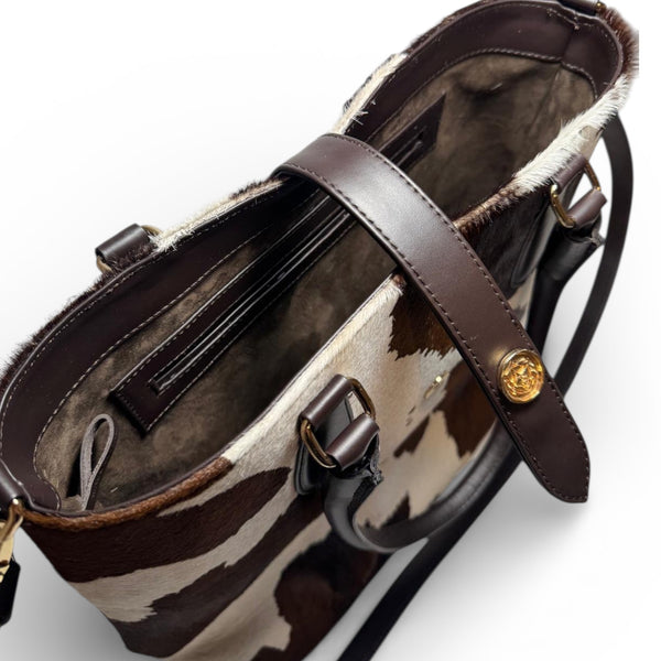 Due to the natural character of cowhide, pattern placement will vary from bag to bag.